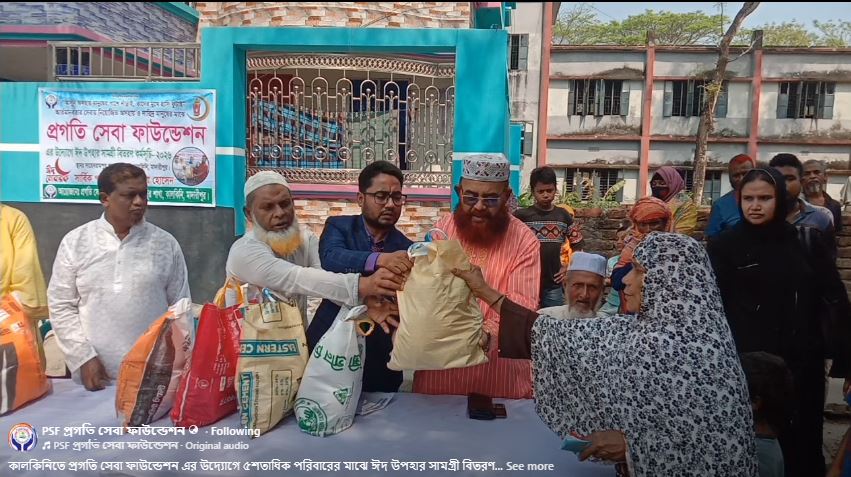 কালকিনিতে প্রগতি সেবা ফাউন্ডেশন এর উদ্যোগে ৫শতাধিক পরিবারের মাঝে ঈদ উপহার সামগ্রী বিতরণ